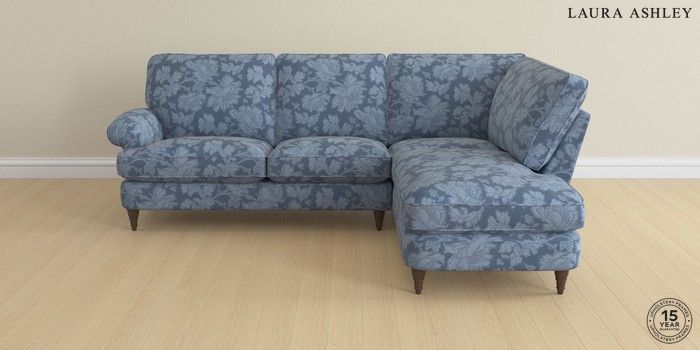 6.12.1 Buy Beaumaris by Laura Ashley Medium Sofa Chaise - Right Hand Tamara Dusky Seaspray Blue Low Turned - Chestnut from the Laura Ashley online shop Click here to use our website with more accessibility support, for example screen readers