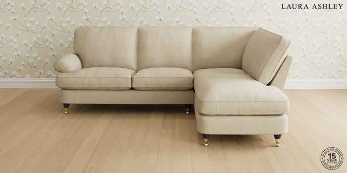 6.12.1 Buy Beaumaris by Laura Ashley Medium Sofa Chaise - Right Hand Wooton Natural Low Brass Castor - Black from the Laura Ashley online shop Click here to use our website with more accessibility support, for example screen readers