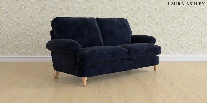 6.12.13 Buy Beaumaris by Laura Ashley 3 Seater Small Sofa Orla Midnight Navy Low Turned - Light Oak from the Laura Ashley online shop Click here to use our website with more accessibility support, for example screen readers