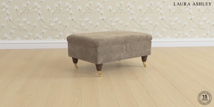 6.12.1 Buy Beaumaris by Laura Ashley Storage Footstool Alwyn Velvet Truffle Natural Low Brass Castor - Chestnut from the Laura Ashley online shop Click here to use our website with more accessibility support, for example screen readers