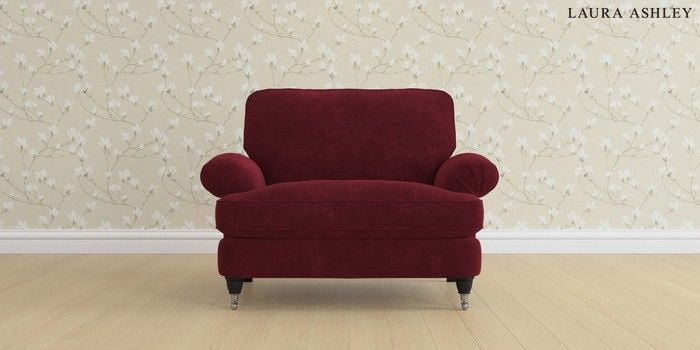 6.12.1 Buy Beaumaris by Laura Ashley Snuggle Alwyn Velvet Burgundy Red Low Chrome Castor - Black from the Laura Ashley online shop Click here to use our website with more accessibility support, for example screen readers