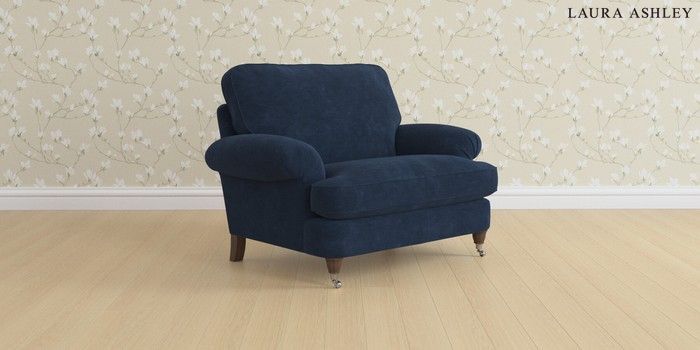 6.12.1 Buy Beaumaris by Laura Ashley Snuggle Alwyn Velvet Midnight Navy Low Chrome Castor - Chestnut from the Laura Ashley online shop Click here to use our website with more accessibility support, for example screen readers