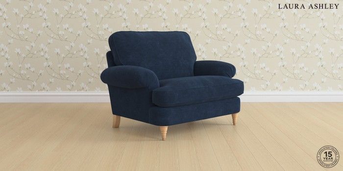6.12.13 Buy Beaumaris by Laura Ashley Snuggle Alwyn Velvet Midnight Navy Low Turned - Light Oak from the Laura Ashley online shop Click here to use our website with more accessibility support, for example screen readers