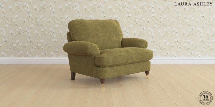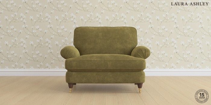 6.12.1 Buy Beaumaris by Laura Ashley Snuggle Alwyn Velvet Olive Green Low Brass Castor - Chestnut from the Laura Ashley online shop Click here to use our website with more accessibility support, for example screen readers