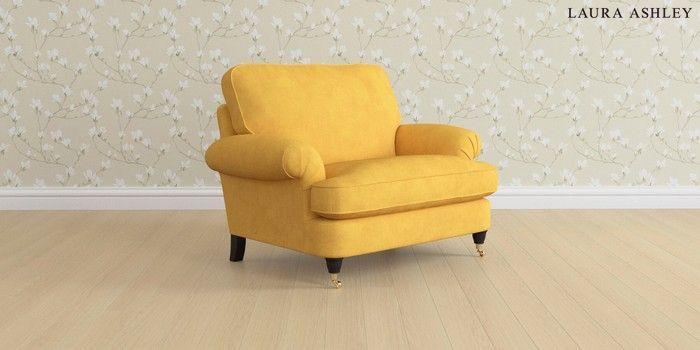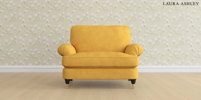 6.12.13 Buy Beaumaris by Laura Ashley Snuggle Bainton Ochre Yellow Low Brass Castor - Black from the Laura Ashley online shop Click here to use our website with more accessibility support, for example screen readers