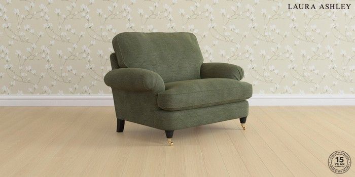 6.12.1 Buy Beaumaris by Laura Ashley Snuggle Edwin Chenille Hedgerow Green Low Brass Castor - Black from the Laura Ashley online shop Click here to use our website with more accessibility support, for example screen readers
