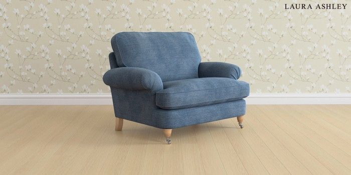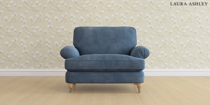 6.12.1 Buy Beaumaris by Laura Ashley Snuggle Edwin Chenille Seaspray Blue Low Chrome Castor - Light Oak from the Laura Ashley online shop Click here to use our website with more accessibility support, for example screen readers