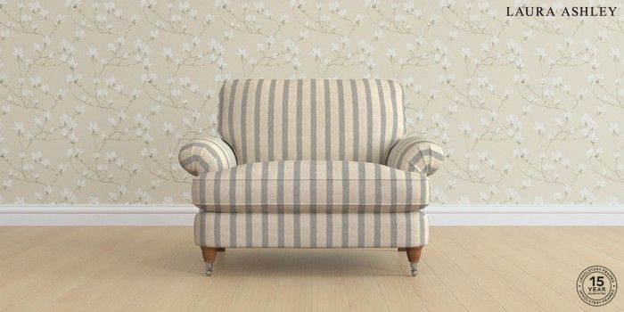 6.12.1 Buy Beaumaris by Laura Ashley Snuggle Kinsham Stripe Seaspray Blue Low Chrome Castor - Teak from the Laura Ashley online shop Click here to use our website with more accessibility support, for example screen readers