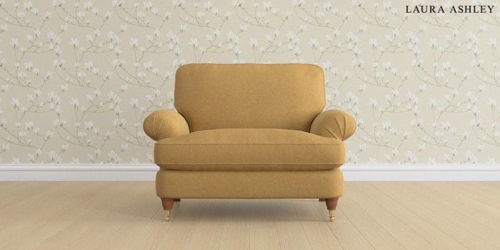 6.12.1 Buy Beaumaris by Laura Ashley Snuggle Peyton Ochre Yellow Low Brass Castor - Teak from the Laura Ashley online shop Click here to use our website with more accessibility support, for example screen readers
