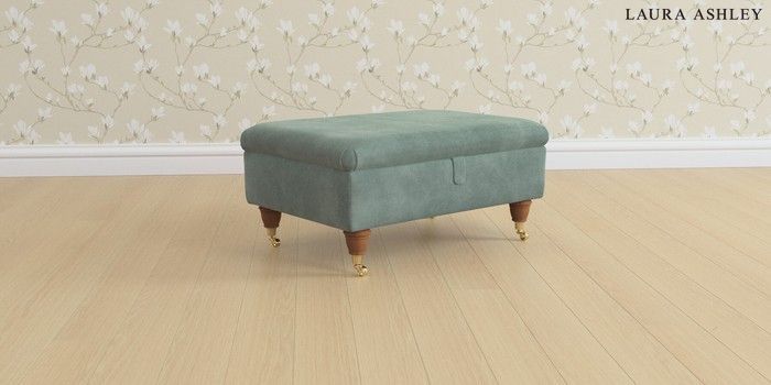 6.12.1 Buy Beaumaris by Laura Ashley Storage Footstool Ailsworth Fern Green Low Brass Castor - Teak from the Laura Ashley online shop Click here to use our website with more accessibility support, for example screen readers