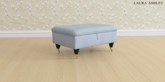 6.12.1 Buy Beaumaris by Laura Ashley Storage Footstool Ailsworth Newport Blue Low Brass Castor - Black from the Laura Ashley online shop Click here to use our website with more accessibility support, for example screen readers