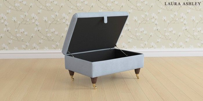 6.12.1 Buy Beaumaris by Laura Ashley Storage Footstool Ailsworth Newport Blue Low Brass Castor - Chestnut from the Laura Ashley online shop Click here to use our website with more accessibility support, for example screen readers