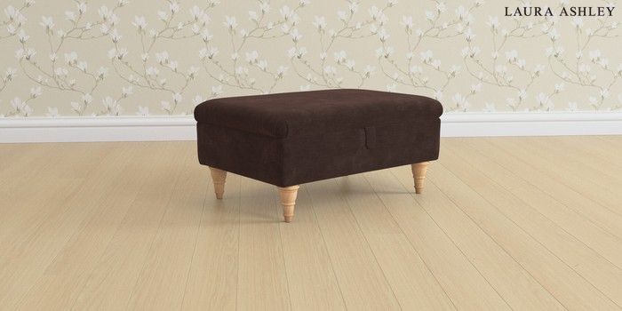6.12.13 Buy Beaumaris by Laura Ashley Storage Footstool Alwyn Velvet Chocolate Brown Low Turned - Light Oak from the Laura Ashley online shop Click here to use our website with more accessibility support, for example screen readers