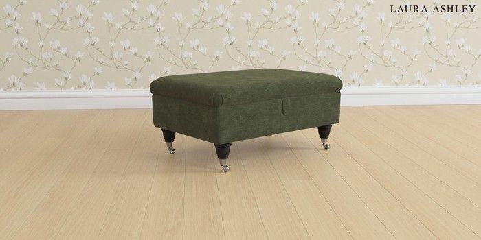 6.12.1 Buy Beaumaris by Laura Ashley Storage Footstool Alwyn Velvet Ivy Green Low Chrome Castor - Black from the Laura Ashley online shop Click here to use our website with more accessibility support, for example screen readers
