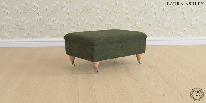 6.12.1 Buy Beaumaris by Laura Ashley Storage Footstool Alwyn Velvet Ivy Green Low Chrome Castor - Light Oak from the Laura Ashley online shop Click here to use our website with more accessibility support, for example screen readers