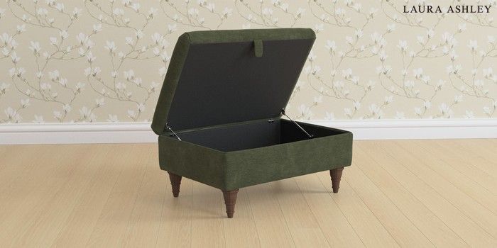 6.12.13 Buy Beaumaris by Laura Ashley Storage Footstool Alwyn Velvet Ivy Green Low Turned - Chestnut from the Laura Ashley online shop Click here to use our website with more accessibility support, for example screen readers