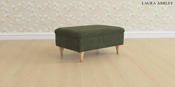6.12.1 Buy Beaumaris by Laura Ashley Storage Footstool Alwyn Velvet Ivy Green Low Turned - Light Oak from the Laura Ashley online shop Click here to use our website with more accessibility support, for example screen readers