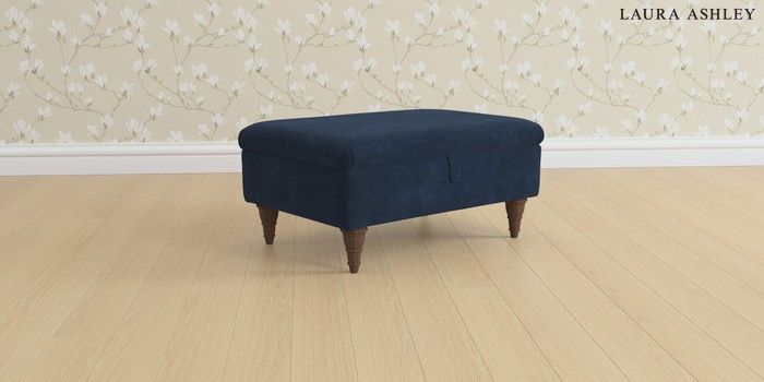 6.12.1 Buy Beaumaris by Laura Ashley Storage Footstool Alwyn Velvet Midnight Navy Low Turned - Chestnut from the Laura Ashley online shop Click here to use our website with more accessibility support, for example screen readers