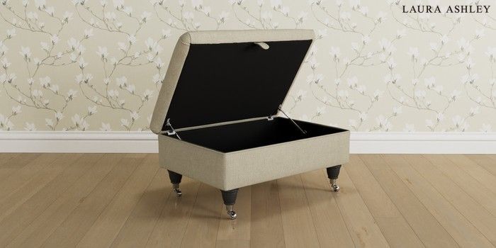 6.12.1 Buy Beaumaris by Laura Ashley Storage Footstool Anneliese Natural Low Chrome Castor - Black from the Laura Ashley online shop Click here to use our website with more accessibility support, for example screen readers