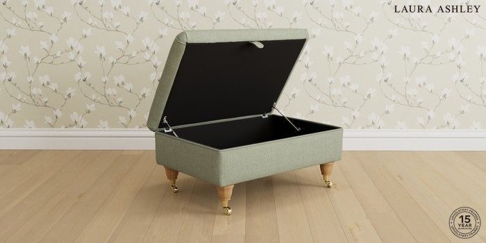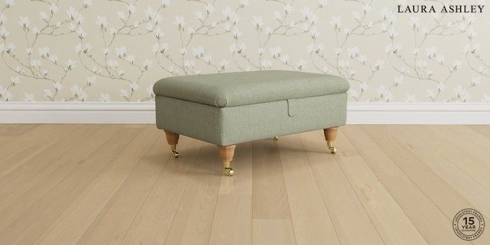 6.12.1 Buy Beaumaris by Laura Ashley Storage Footstool Anneliese Sage Green Low Brass Castor - Light Oak from the Laura Ashley online shop Click here to use our website with more accessibility support, for example screen readers