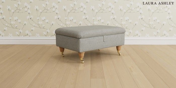 6.12.13 Buy Beaumaris by Laura Ashley Storage Footstool Anneliese Steel Grey Low Brass Castor - Light Oak from the Laura Ashley online shop Click here to use our website with more accessibility support, for example screen readers