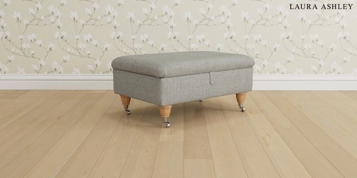 6.12.13 Buy Beaumaris by Laura Ashley Storage Footstool Anneliese Steel Grey Low Chrome Castor - Light Oak from the Laura Ashley online shop Click here to use our website with more accessibility support, for example screen readers
