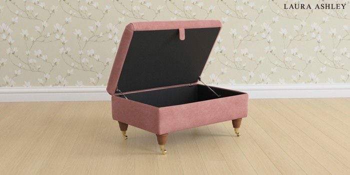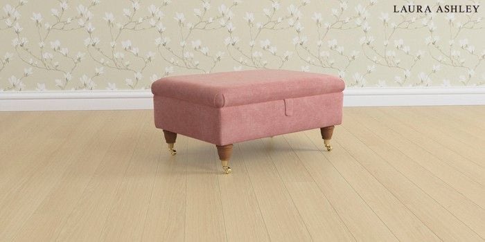 6.12.13 Buy Beaumaris by Laura Ashley Storage Footstool Bainton Old Rose Pink Low Brass Castor - Teak from the Laura Ashley online shop Click here to use our website with more accessibility support, for example screen readers