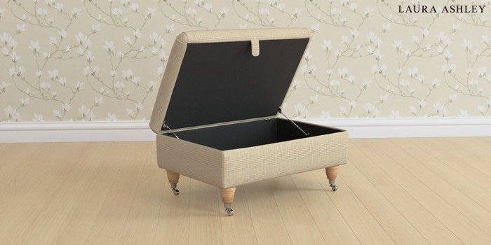 6.12.1 Buy Beaumaris by Laura Ashley Storage Footstool Birchgrove Check Oatmeal Natural Low Chrome Castor - Light Oak from the Laura Ashley online shop Click here to use our website with more accessibility support, for example screen readers