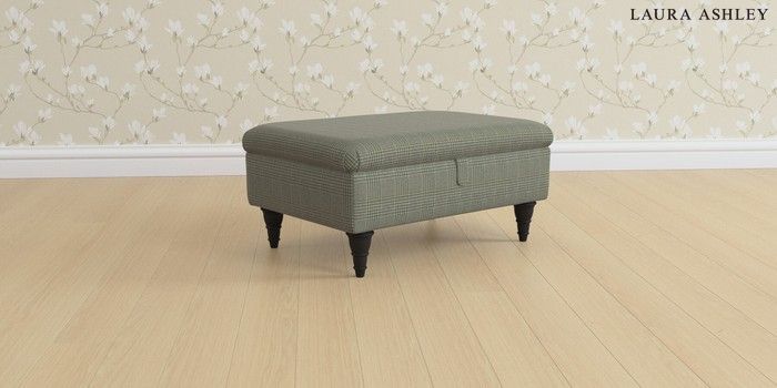 6.12.1 Buy Beaumaris by Laura Ashley Storage Footstool Birchgrove Check Olive Green Low Turned - Black from the Laura Ashley online shop Click here to use our website with more accessibility support, for example screen readers