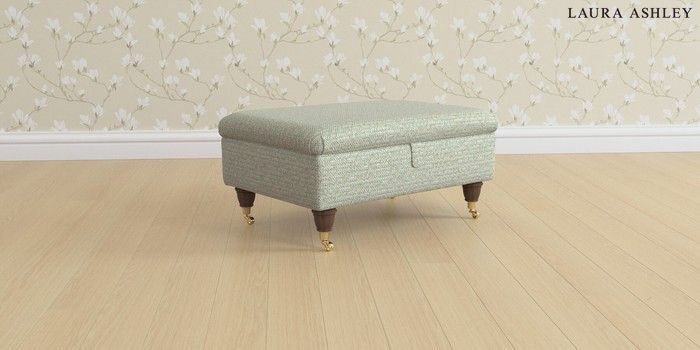 6.12.1 Buy Beaumaris by Laura Ashley Storage Footstool Borwick Newport Blue Low Brass Castor - Chestnut from the Laura Ashley online shop Click here to use our website with more accessibility support, for example screen readers