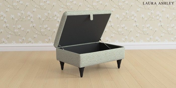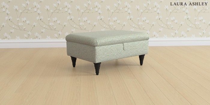 6.12.1 Buy Beaumaris by Laura Ashley Storage Footstool Borwick Newport Blue Low Turned - Black from the Laura Ashley online shop Click here to use our website with more accessibility support, for example screen readers
