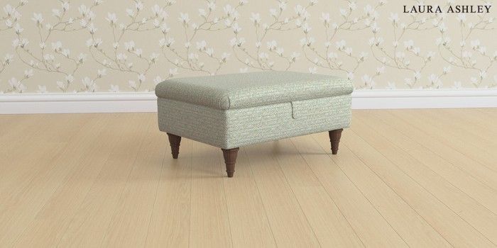 6.12.1 Buy Beaumaris by Laura Ashley Storage Footstool Borwick Newport Blue Low Turned - Chestnut from the Laura Ashley online shop Click here to use our website with more accessibility support, for example screen readers