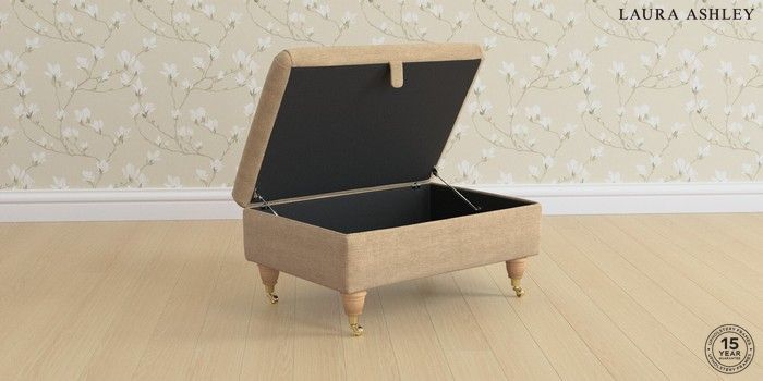 6.12.1 Buy Beaumaris by Laura Ashley Storage Footstool Edwin Chenille Gold Natural Low Brass Castor - Light Oak from the Laura Ashley online shop Click here to use our website with more accessibility support, for example screen readers