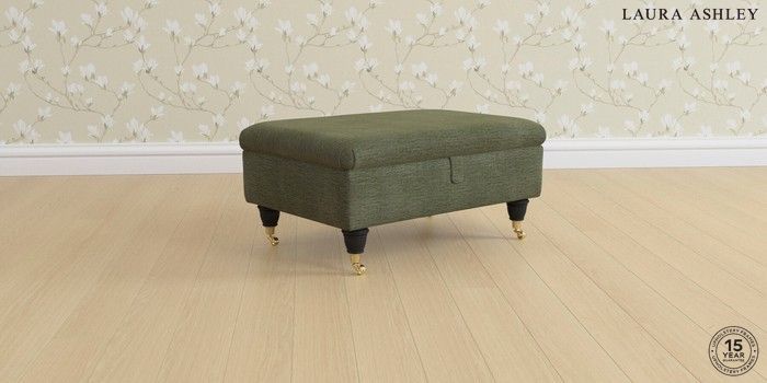 6.12.1 Buy Beaumaris by Laura Ashley Storage Footstool Edwin Chenille Hedgerow Green Low Brass Castor - Black from the Laura Ashley online shop Click here to use our website with more accessibility support, for example screen readers
