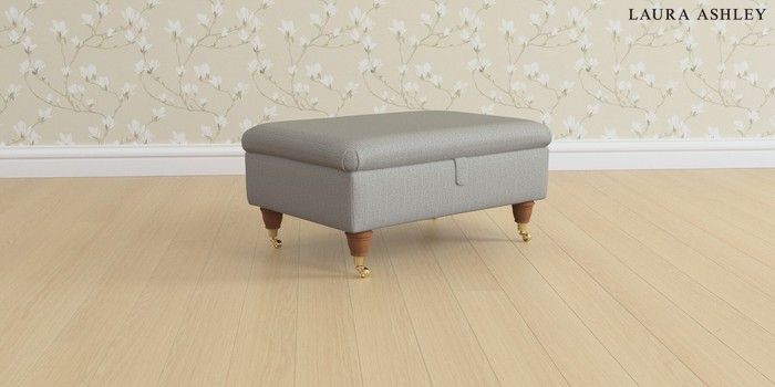 6.12.1 Buy Beaumaris by Laura Ashley Storage Footstool Edwin Herringbone Pale Steel Grey Low Brass Castor - Teak from the Laura Ashley online shop Click here to use our website with more accessibility support, for example screen readers