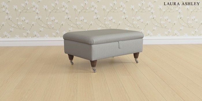 6.12.13 Buy Beaumaris by Laura Ashley Storage Footstool Edwin Herringbone Pale Steel Grey Low Chrome Castor - Chestnut from the Laura Ashley online shop Click here to use our website with more accessibility support, for example screen readers