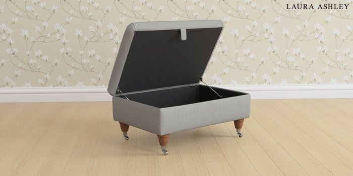6.12.1 Buy Beaumaris by Laura Ashley Storage Footstool Edwin Herringbone Pale Steel Grey Low Chrome Castor - Teak from the Laura Ashley online shop Click here to use our website with more accessibility support, for example screen readers