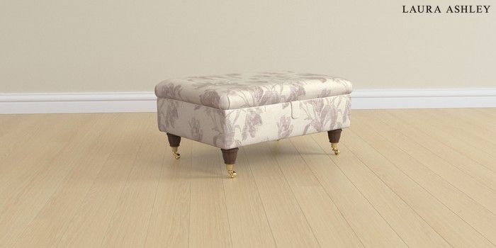 6.12.1 Buy Beaumaris by Laura Ashley Storage Footstool Gosford Weave Dusky Plum Purple Low Brass Castor - Chestnut from the Laura Ashley online shop Click here to use our website with more accessibility support, for example screen readers