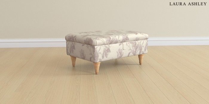 6.12.13 Buy Beaumaris by Laura Ashley Storage Footstool Gosford Weave Dusky Plum Purple Low Turned - Light Oak from the Laura Ashley online shop Click here to use our website with more accessibility support, for example screen readers