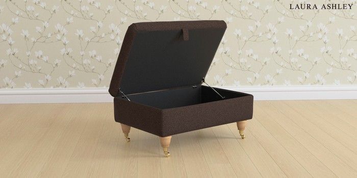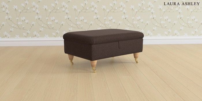 6.12.13 Buy Beaumaris by Laura Ashley Storage Footstool Harley Chestnut Brown Low Brass Castor - Light Oak from the Laura Ashley online shop Click here to use our website with more accessibility support, for example screen readers