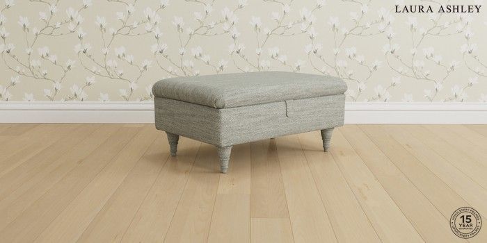 6.12.1 Buy Beaumaris by Laura Ashley Storage Footstool Harley Dove Grey Low Turned - Light Oak from the Laura Ashley online shop Click here to use our website with more accessibility support, for example screen readers