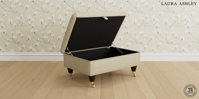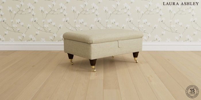 6.12.1 Buy Beaumaris by Laura Ashley Storage Footstool Harley Natural Low Brass Castor - Chestnut from the Laura Ashley online shop Click here to use our website with more accessibility support, for example screen readers