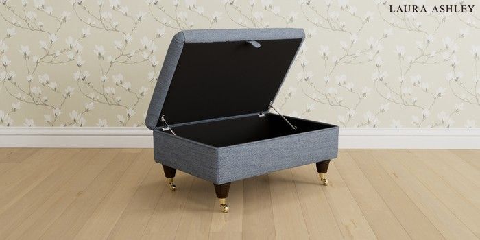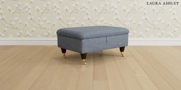 6.12.1 Buy Beaumaris by Laura Ashley Storage Footstool Harley Seaspray Blue Low Brass Castor - Chestnut from the Laura Ashley online shop Click here to use our website with more accessibility support, for example screen readers