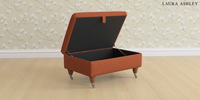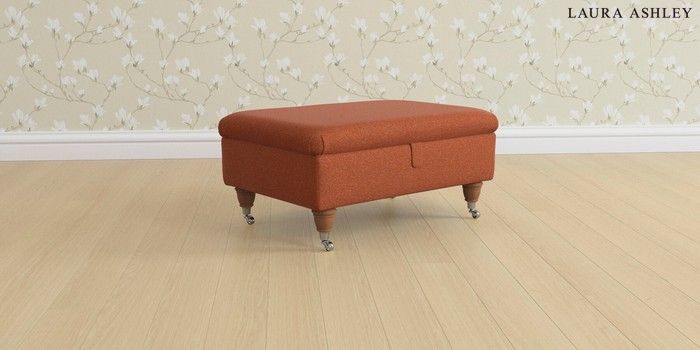 6.12.1 Buy Beaumaris by Laura Ashley Storage Footstool Harley Terracotta Orange Low Chrome Castor - Teak from the Laura Ashley online shop Click here to use our website with more accessibility support, for example screen readers