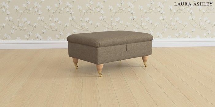 6.12.1 Buy Beaumaris by Laura Ashley Storage Footstool Harley Truffle Natural Low Brass Castor - Light Oak from the Laura Ashley online shop Click here to use our website with more accessibility support, for example screen readers