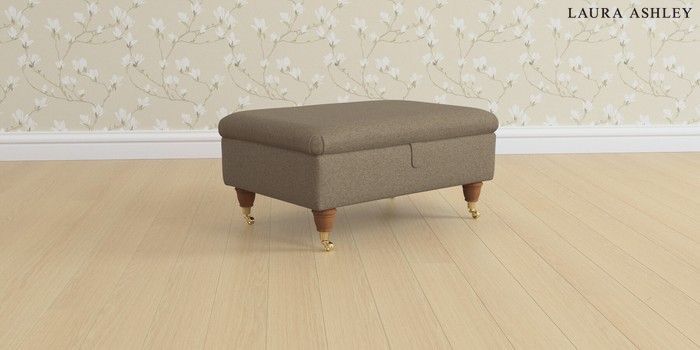 6.12.1 Buy Beaumaris by Laura Ashley Storage Footstool Harley Truffle Natural Low Brass Castor - Teak from the Laura Ashley online shop Click here to use our website with more accessibility support, for example screen readers