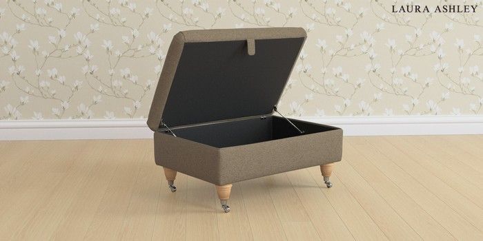 6.12.1 Buy Beaumaris by Laura Ashley Storage Footstool Harley Truffle Natural Low Chrome Castor - Light Oak from the Laura Ashley online shop Click here to use our website with more accessibility support, for example screen readers