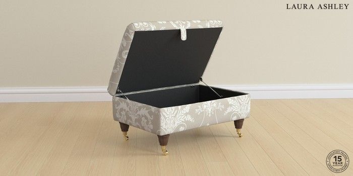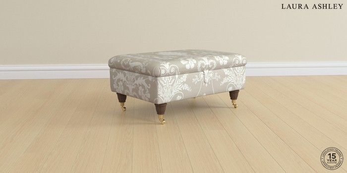 6.12.13 Buy Beaumaris by Laura Ashley Storage Footstool Josette Champagne Natural Low Brass Castor - Chestnut from the Laura Ashley online shop Click here to use our website with more accessibility support, for example screen readers