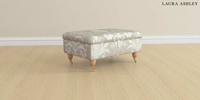 6.12.1 Buy Beaumaris by Laura Ashley Storage Footstool Josette Champagne Natural Low Brass Castor - Light Oak from the Laura Ashley online shop Click here to use our website with more accessibility support, for example screen readers
