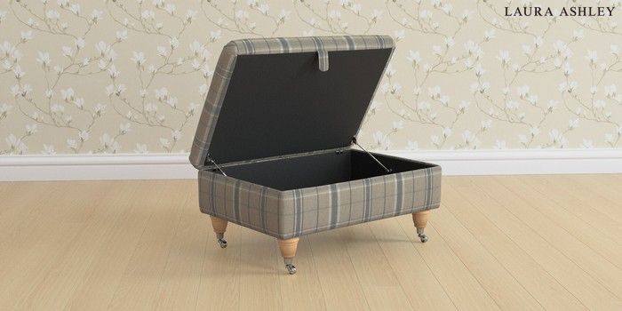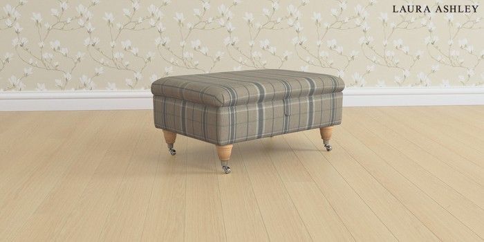 6.12.13 Buy Beaumaris by Laura Ashley Storage Footstool Longstowe Check French Grey Low Chrome Castor - Light Oak from the Laura Ashley online shop Click here to use our website with more accessibility support, for example screen readers